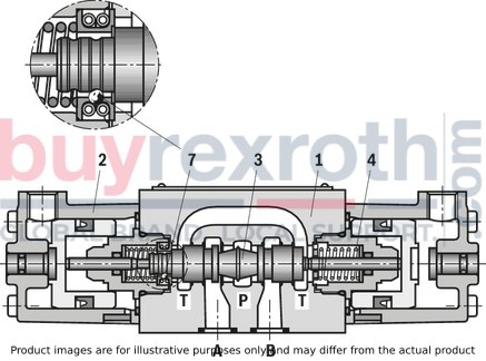 Directional valves with hydraulic actuation are also available as a 2-spool position valve with detent (7). If actuation elements with detent are used, each spool position can be locked.