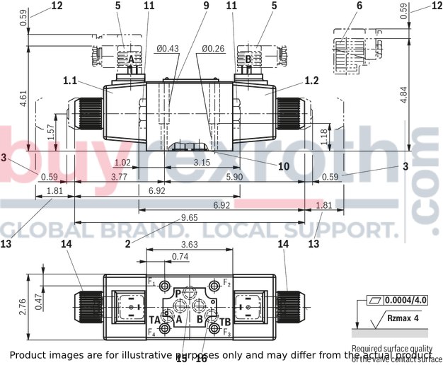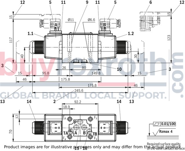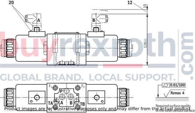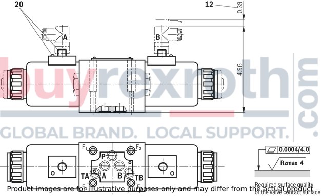 Deviating from ISO 4401, port T is referred to as TA and port T1 is referred to as TB in this data sheet. The dimensions are nominal dimensions which are subject to tolerances.Subplates according to data sheet 45054 (separate order)