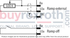 When using an external time potentiometer, the internal potentiometer for the ramp time must be set to maximum. The maximum ramp time is reduced as the resistance value of the external potentiometer is switched in parallel to that of the internal one (ca. 500 kΩ).