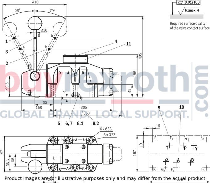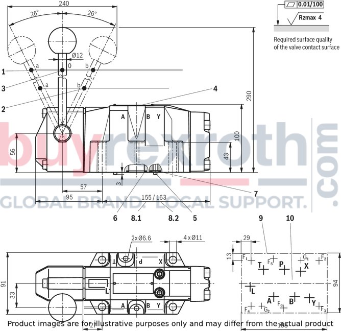 Porting pattern according to DIN 24340 form A32 and ISO 4401-10-09-0-05 |