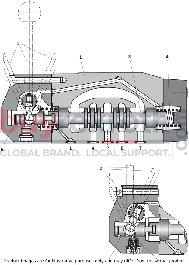 This version is a directional valve with 2 or 3 spool positions and a detent (6) which locks all spool positions.