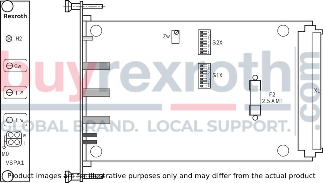 1) up to component series 5X 2) With type VT-VSPA1-1 (component series 10), the BR22 switch must be set to “ON” and the “R130” potentiometer must be rotated to the left stop in order to set the correct characteristic curve.With type VT-VSPA1-1 (from component series 11) and type VT-VSPA1K-1, switches S21 and S22 do not have any effect. The “Zw” potentiometer does not have to be operated.
