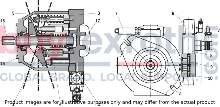 A SYDFE1-2X control system is used for the electro-hydraulic control of swivel angle, pressure and power (partially optional, see type key pilot control and preload valve and ordering code) of an axial piston variable displacement pump.