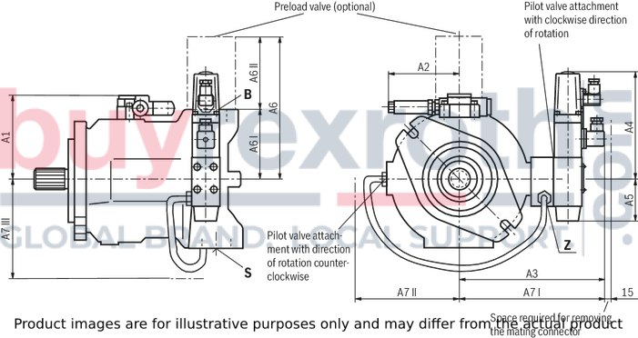 SYDFE.-2X (size 71 and size 100, flange C) A10VO..31 (size 71 and size 100, flange C, see data sheet 92701) PGH5 (shaft R, flange U2, see data sheet 10223)